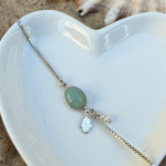 צמיד עדין, מתכוונן, משולב באבן חן אקווה מרין קטנה,